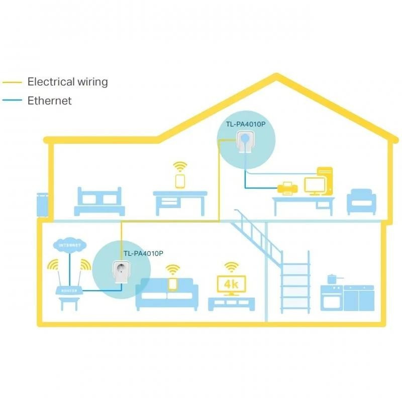 El TL-PA4010P KIT convierte su línea eléctrica existente en una red de alta velocidad sin necesidad de cables nuevos o de perforación. No se requiere configuración, simplemente conecte el adaptador a su toma de corriente y puede establecer la infraestructura de red en un instante. Además, su toma de corriente integrada asegura que ninguna toma de corriente va a perder. Con velocidades de hasta 600Mbps y 300 metros sobre los cables eléctricos domésticos, el TL-PA4010P KIT es una gran opción para una fácil de construir la red de entretenimiento multimedia.