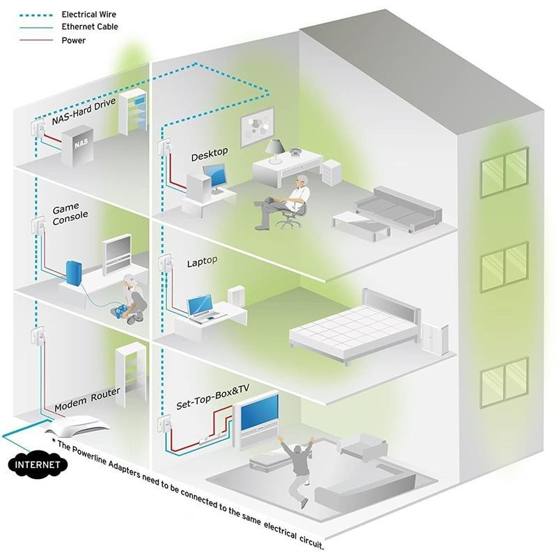 - Alcance de hasta 300 m en el hogar para un rendimiento eficiente de circuito de potencia a través de las paredes o en suelos