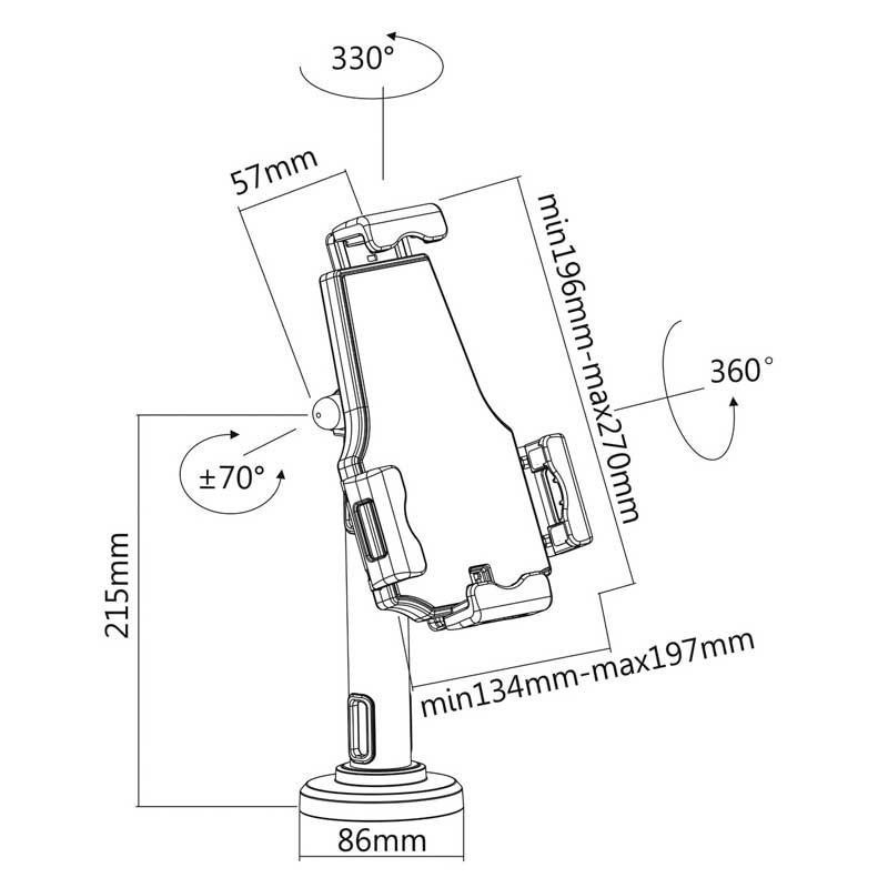 • Soporte profesional antirobo de sobremesa / pared ajustable para tablet.