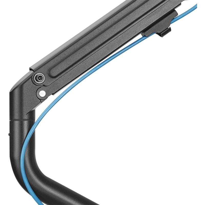 Soporte de mesa Eco Aisens contrapeso giratorio e inclinable para monitor/TV de 3 pivotes y 1 brazo fabricado con acero de alta resistencia y pintado con pintura electrostática para un acabado perfecto. Se permite la instalación en la mesa a través de abrazadera o de tornillo pasante.