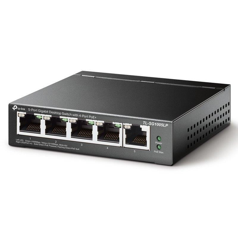 TP-Link TL-SG1005LP es un switch con 5 puertos Gigabit Ethernet, 4 de ellos PoE+, admite alimentación de hasta 30W por cada puerto PoE.