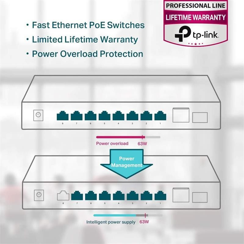 SWITCH TP-LINK GIGABIT 8 PUERTOS POE + 1 SFP TL-SG1210P