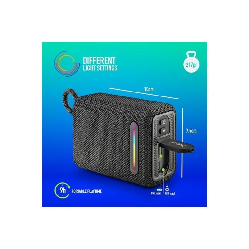 Altavoz portátil compatible con tecnología Bluetooth, Luces RGB e impermeabilidad IPX6.