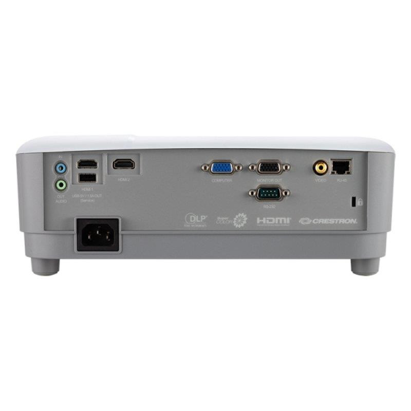 - Monitoreo y control de red: El administrador de TI puede supervisar, programar y administrar el proyector de manera remota, y recibir alertas de estado del proyector con el sistema e-Control? y el software de gestión RoomView Express? integrados de Creston®. Gracias a que este proyector cuenta con certificación Crestron® y AMX®, el administrador de TI puede controlar y supervisar el proyector para campus o empresas de todos los tamaños.