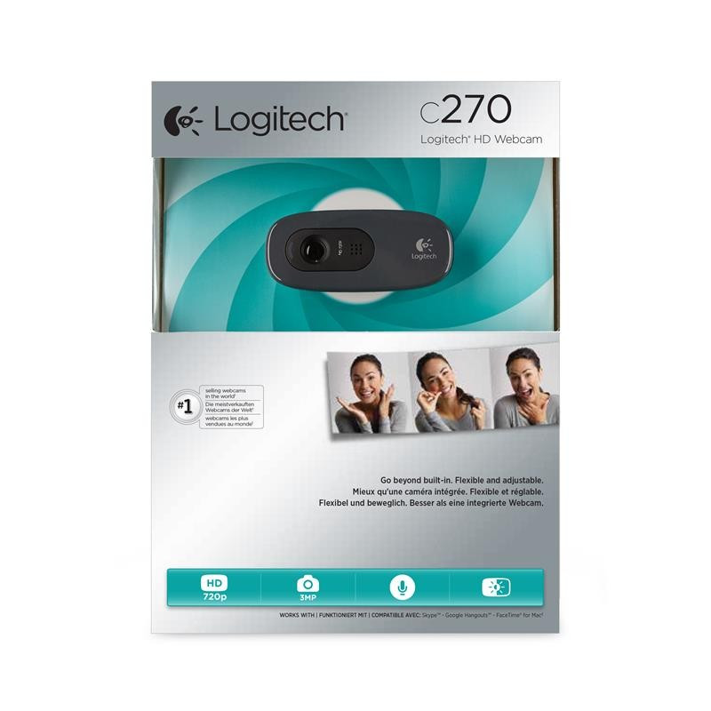 Logitech C270, 3 MP, 1280 x 720 Pixeles, 720p, USB 2.0, Negro, Recortar