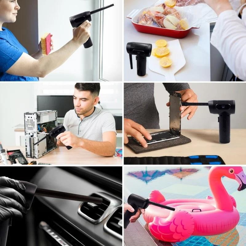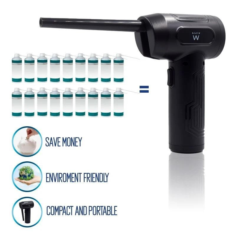 El soplador de aire EWENT EW5607, está especialmente diseñado para utilizarse en diferentes dispositivos electrónicos para su limpieza y eliminación de polvo. Limpia el polvo de tu teclado, ordenador, etc, de una forma rápida y cómoda. A parte del uso cotidiano en el hogar, oficinas, coche, etc, está recomendado especialmente también para el uso en los servicios técnicos de componentes electrónico. Al ser aire soplado mecánicamente, no emite humedad, impidiendo que los objetos o dispositivos donde se use puedan deteriorarse.