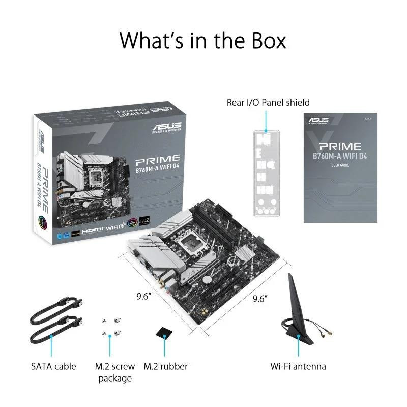 La placa base ASUS PRIME B760M-A WIFI D4 diseñada para procesadores híbridos Intel Core de 12ª y 13ª generación es ideal para montar un sistema potente y versátil. Las placas base ASUS Prime están diseñadas y fabricadas para usuarios exigentes que buscan un rendimiento constante y fiabilidad a largo plazo.