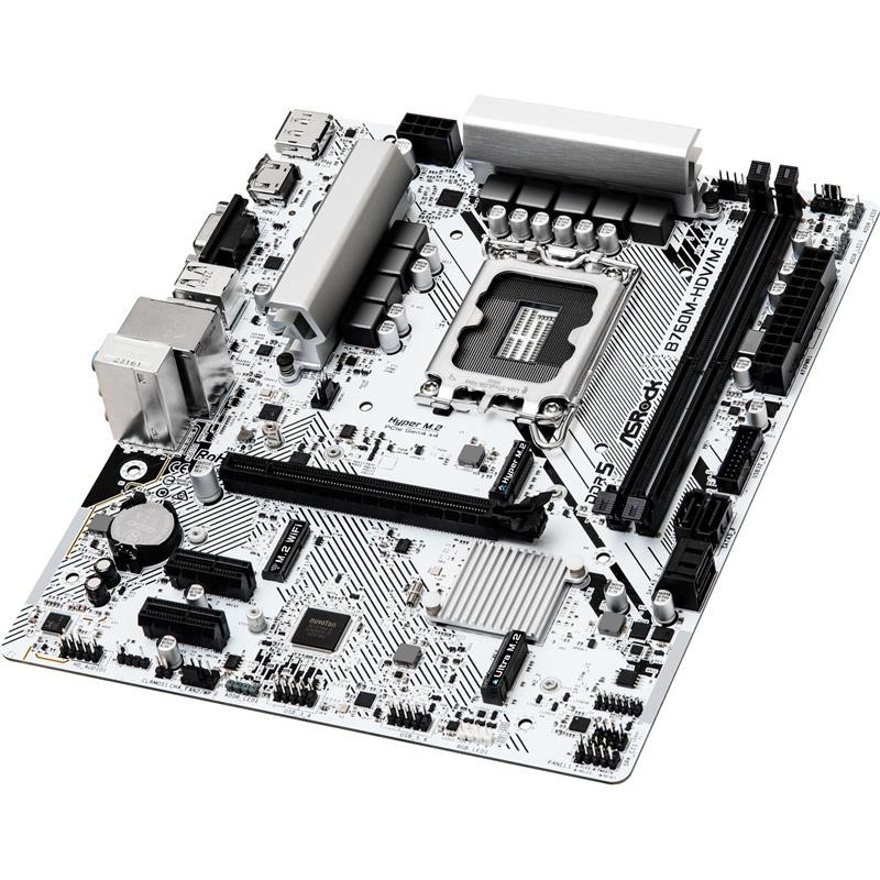 La ASRock B760M-HDV/ es una placa base con chipset Intel B760, compatible con procesadores Intel de 12ª y 13ª generación para socket LGA 1700. Ofrece soporte para hasta 96 GB de RAM DDR5, una ranura PCIe 4.0 x16, dos ranuras PCIe 4.0 x1, y almacenamiento mediante SATA3 y M.2. Además, incluye sonido de 8 canales, LAN de 2,5 Gb y múltiples puertos USB.