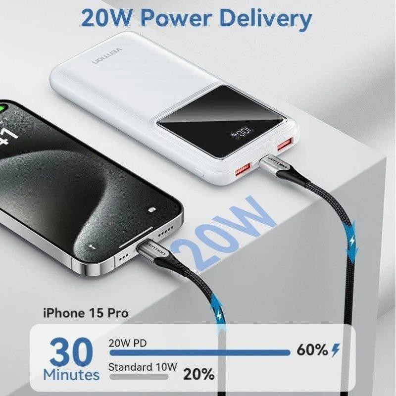 POWERBANK VENTION 10000MAH 2XUSB-A + USB-C LED DISPLAY 22.5W BLACK