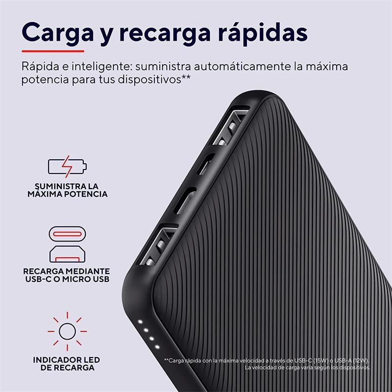 Batería externa ultrafina para cargas rápidas en itinerancia (5000 mAh)