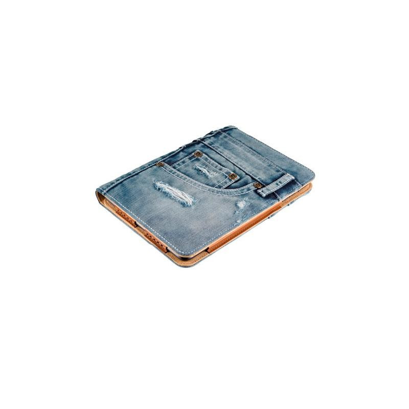 Hoja protectora con soporte de visualización para iPad mini diseÇñados en vaquero deslavado y con detalles vaqueros