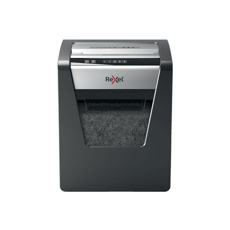 "¶La potencia para destruir mÇs! La destructora de papel Rexel Momentum X415 destruye hasta 15 hojas de una vez, funciona ininterrumpidamente durante 2 horas y es ideal para oficinas pequeÇñas. La tecnología antiatasco del modelo X415 garantiza el funcionamiento ininterrumpido. P4, corte cruzado (partículas de 4 Ç? 40 mm). Trituradora silenciosa con botones tÇctiles sencillos e intuitivos y una generosa papelera de 23 litros de capacidad (225 hojas A4).