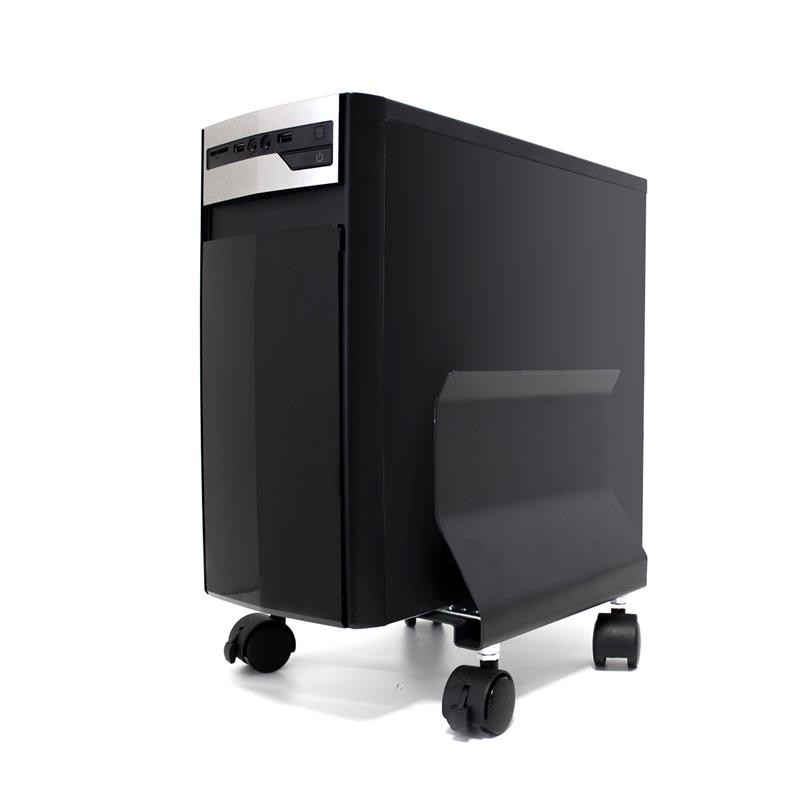 Perfecto soporte resistente Phoenix  para ordenadores con ruedas de color negro.