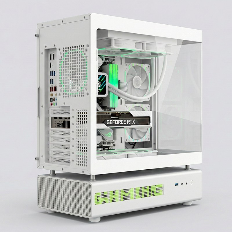 N90 es un equipo gaming pensado para rendir al máximo y lucir espectacular en cualquier setup. Su chasis de alto flujo de aire mantiene temperaturas estables incluso en sesiones intensas. Refrigeración avanzada y componentes bien integrados para un rendimiento constante y silencioso. Diseño premium con panel lateral para presumir de hardware y una estética cuidada al detalle.