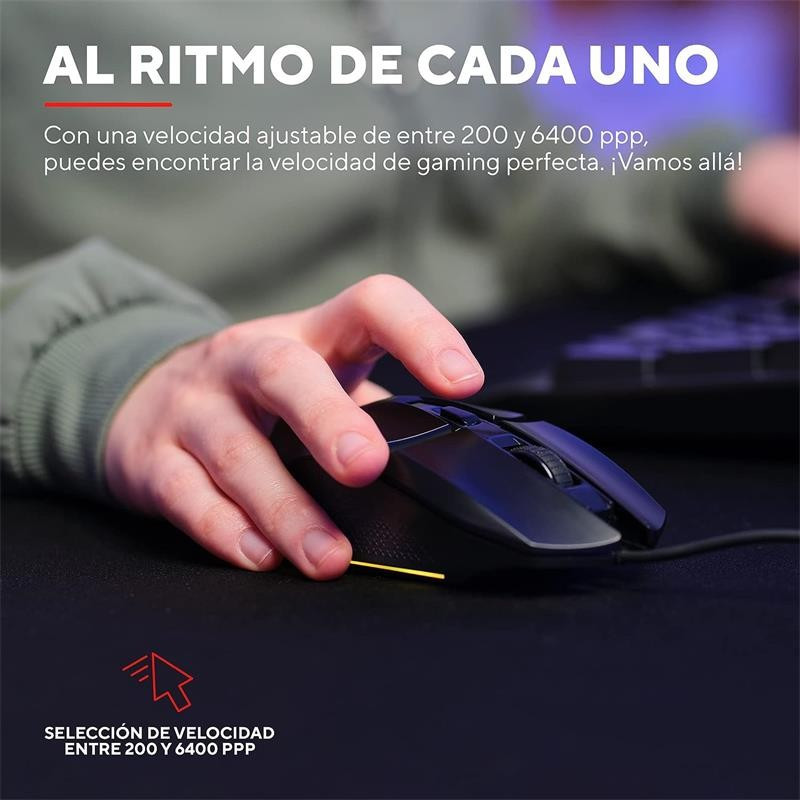• Al ritmo de cada uno: No importa cuál sea tu estilo de gaming; Felox se adapta a él. Con una velocidad ajustable de entre 200 y 6400 PPP, puedes encontrar la velocidad de gaming perfecta. ¡Vamos allá!