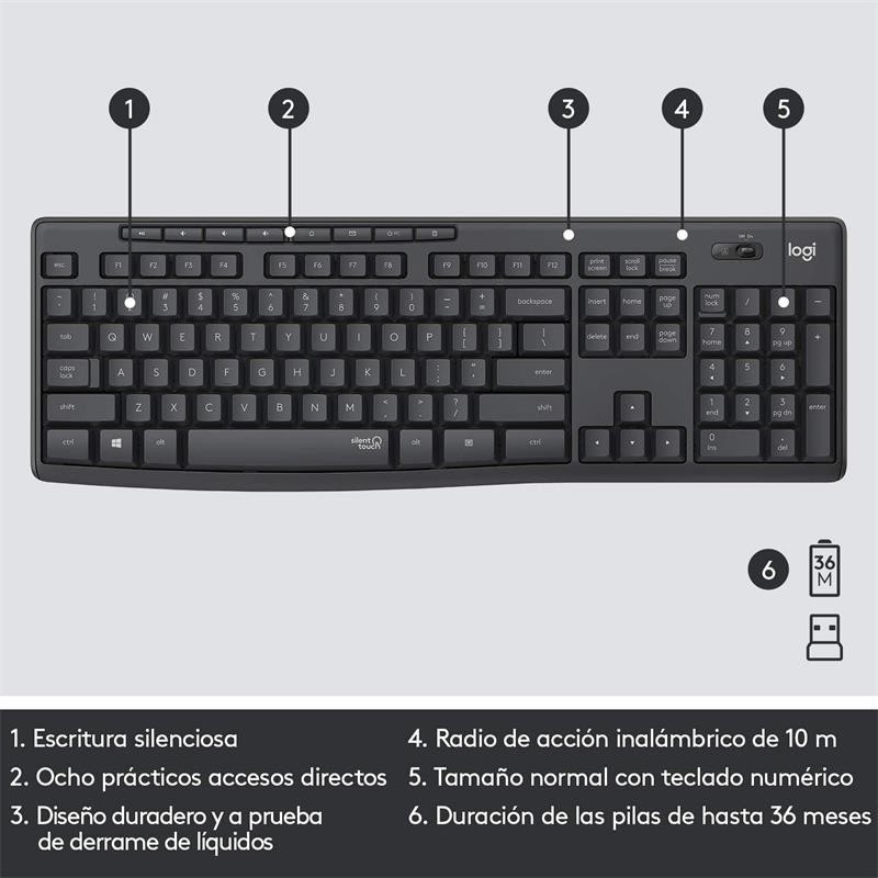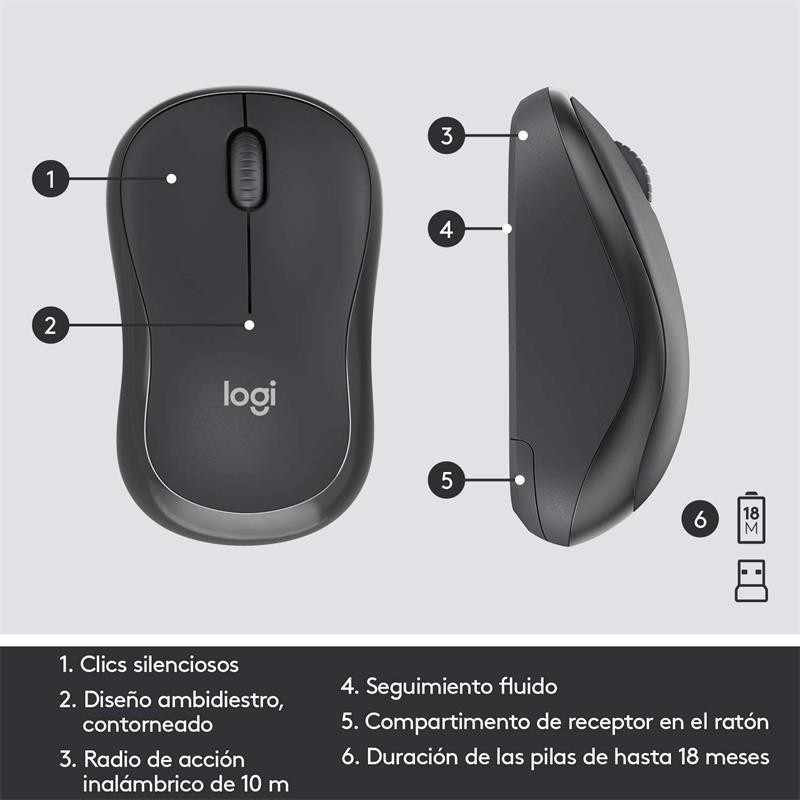 exclusiva de Logitech que elimina más del 90% del ruido producido por teclados y ratones. Ofrece la misma sensación de clic y escritura que la mejor combinación de todas y sin molestos ruidos al hacer clic o escribir.