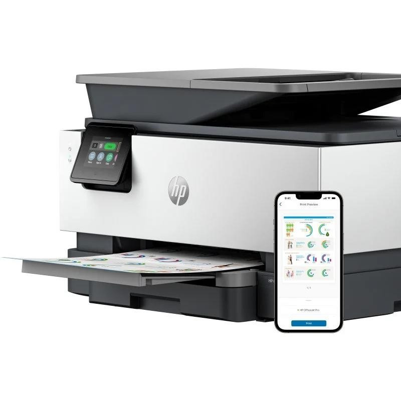 Gestiona tus impresiones como un profesional gracias a la HP Officejet Pro 9120b. La impresora profesional de inyección de tinta a color para oficinas distribuidas y empleados híbridos de la empresa de impresoras n.° 1 del mundo, combinada con nuestra mejor tecnología para ayudarte a gestionarlo todo. Esto agiliza el trabajo en cualquier red. Escaneado/copia/fax incluidos.