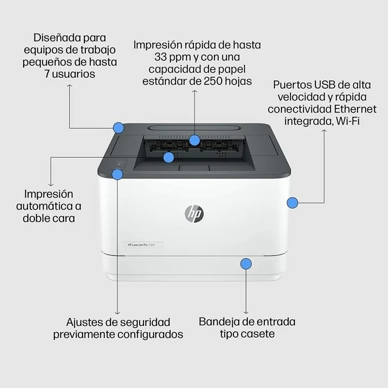 IMPRESORA HP LASERJET PRO LASER MONOCROMO 3002DW DUPLEX WHITE