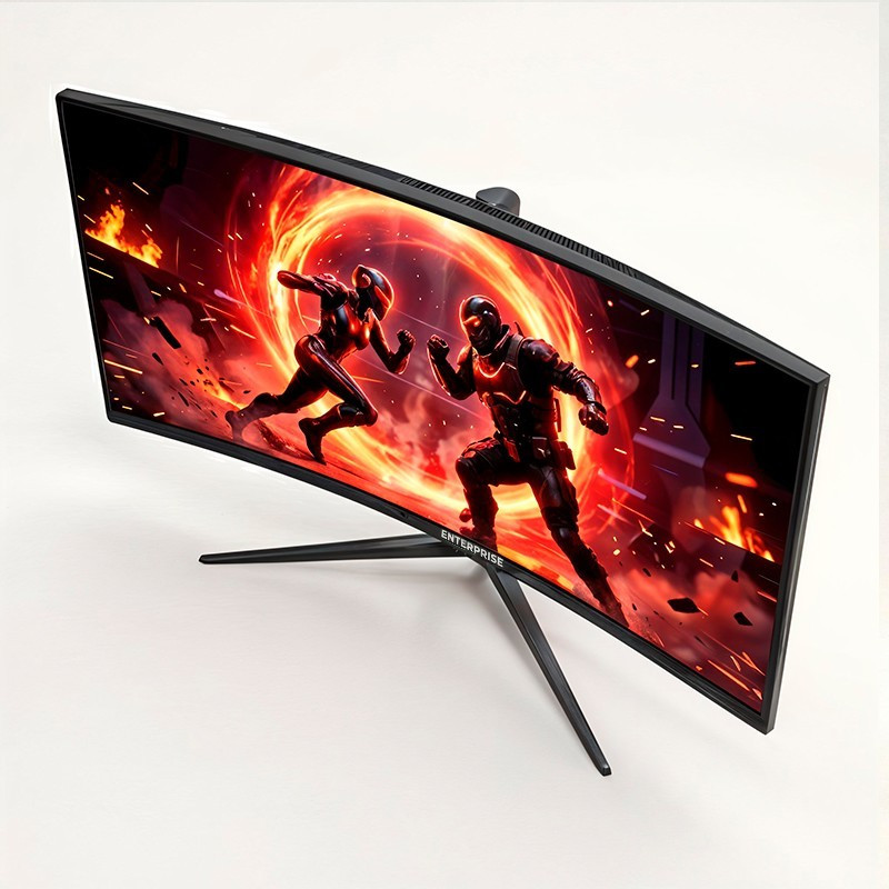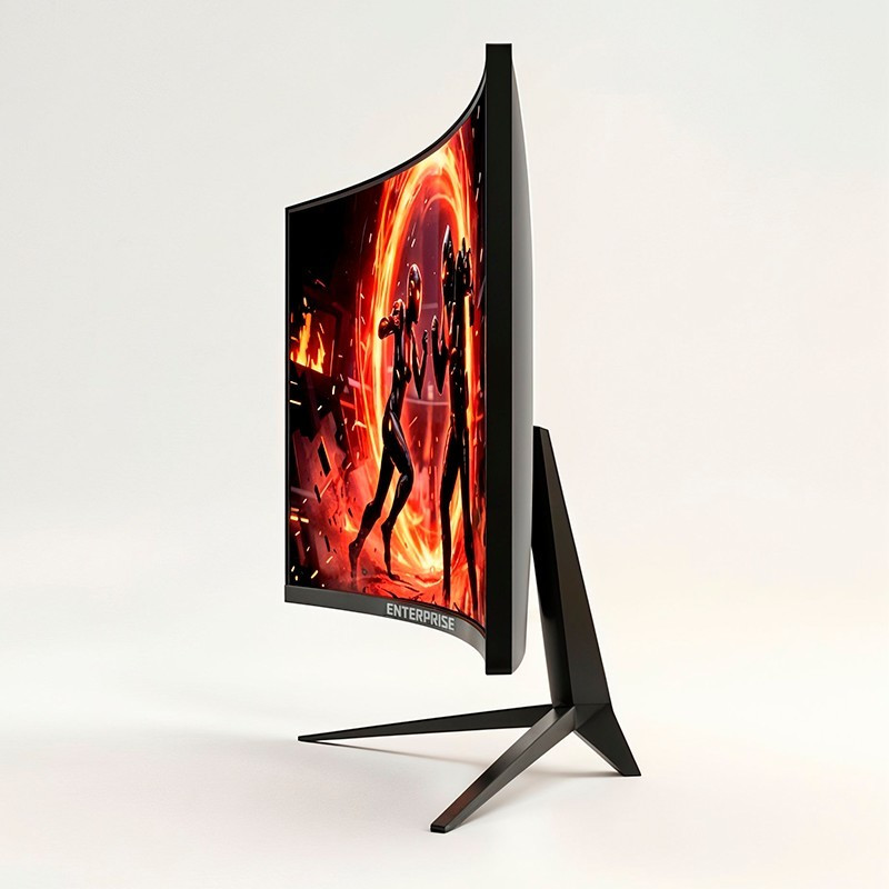 Monitor Enterprise Ultra Gaming View ENT-UGV-27 de 27" QHD (2560×1440) con panel VA curvo R1800, 200Hz y 1ms para máxima fluidez. Con FreeSync, HDR, Flicker-Free y Low Blue Light, además de HDMI 2.0×2 + DP 1.4×2, altavoces 2×3W y montaje VESA 100×100.
