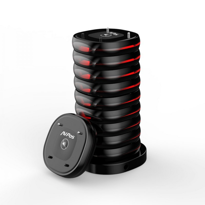 El Avisador de Clientes AVPos T10 es un sistema inalámbrico ideal para negocios de hostelería. Con 10 discos avisadores programables que notifican a los clientes por sonido, vibración y luz, mejora la eficiencia del servicio y reduce los tiempos de espera.