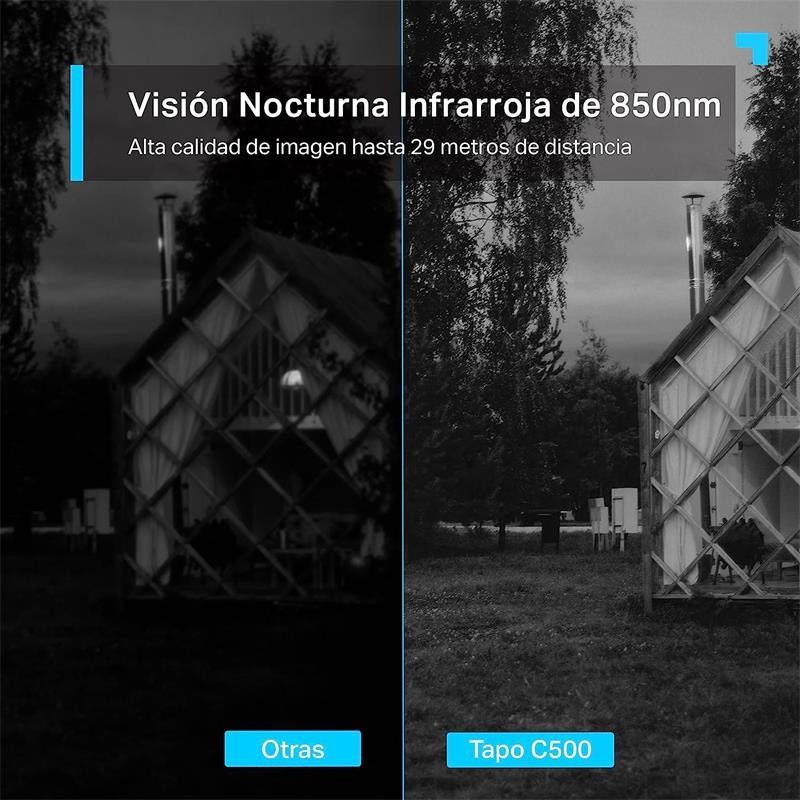 • Vision Nocturna. Tapo C500 es capaz de grabar en total osucridad a una distancia de hasta 29 metros.